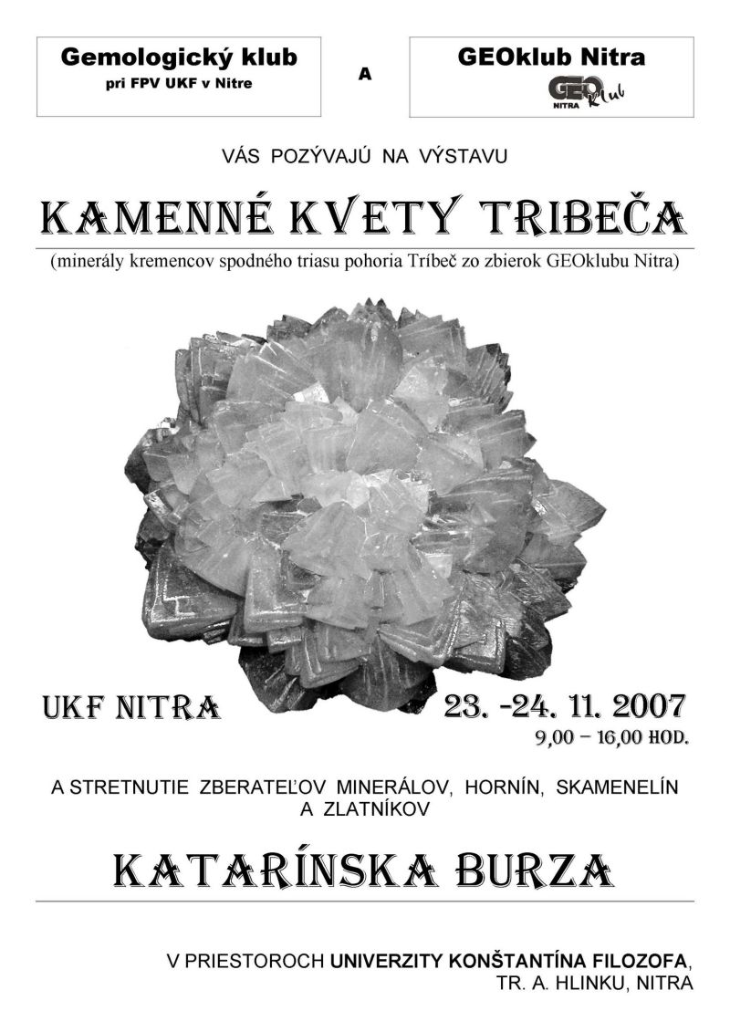 V dňoch 23-24.11.2007 (piatok - sobota) sa v priestoroch Univerzity Konštantína Filozofa v Nitre uskutoční "Katarínska burza" stretnutie zberateľov minerálov, hornín, skamenelín a zlatníkov, spojená s výstavou "Kamenné kvety Tribeča", zameranou na prezentáciu minerálov kremencov spodného triasu pohoria Tribeč zo zbierok členov GEOklubu Nitra.