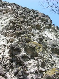 Granáty sa nachádzajú v hornine, sopečná hornina ružovej až sivomodrej farby s veľkým množstvom pyroxénov, hornina je proste prešpikovaná akoby maličkými sklíčkami, celé sa to trbliece... :-)