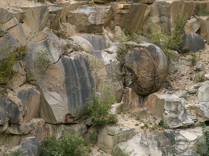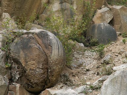 na tri veľké kamenné gule v spodnej časti lomu