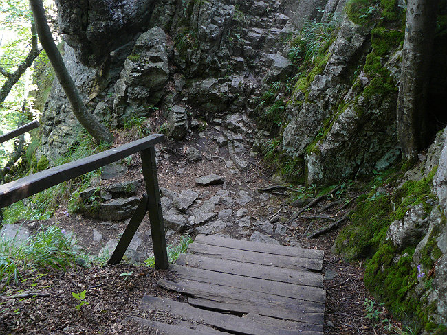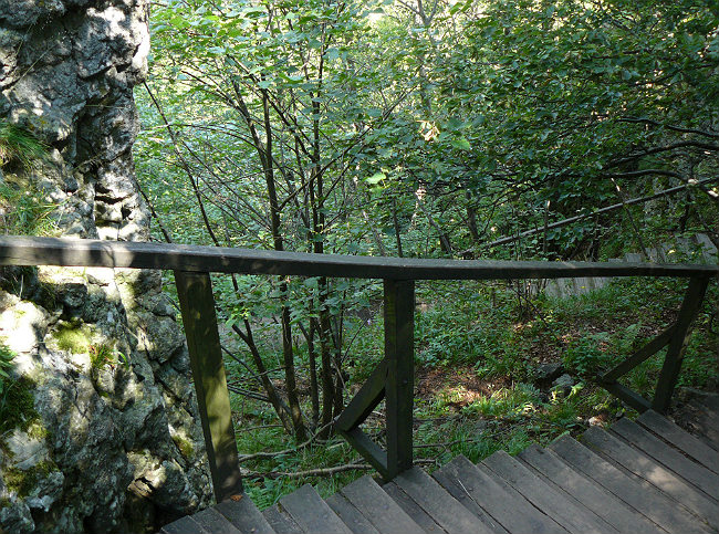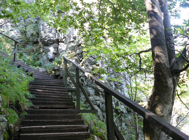 Andezitovým skalným mestom stúpame ako páni, po drevenom schodišti