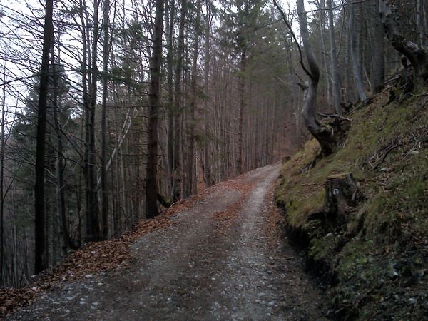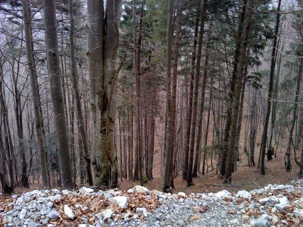 Zakrpatený les na preschnutom svahu