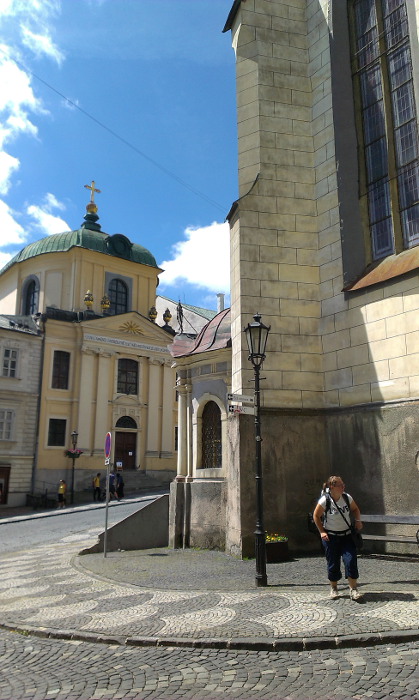 Kráčame mierne stúpajúcou hlavnou ulicou. Na ľavej strane sa dvíha mohutná niekoľkoposchodová budova tabakovej továrne. Po chodníku, ktorý sa dvíha do výšky niekoľko metrov nad cestu pokračujeme ďalej. Míňame dominikánsky kostol, budovu banského múzea. Mesto je uprostred dňa veľmi živé. V kaviarňach a zmrzlinárňach, ktoré majú sedenia vytiahnuté priamo na chodníkoch je plno.
