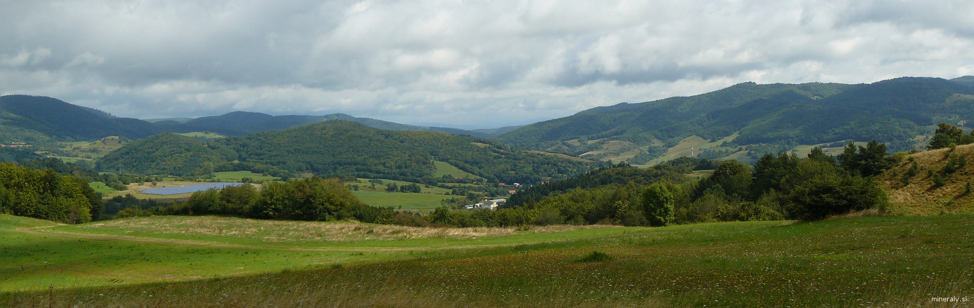 Pohľad na Banskú Belú a okolie spod štiavnickej Kalvárie. Celkom vzadu vidieť Kremnické vrchy. GPS: 48.464072, 18.908664